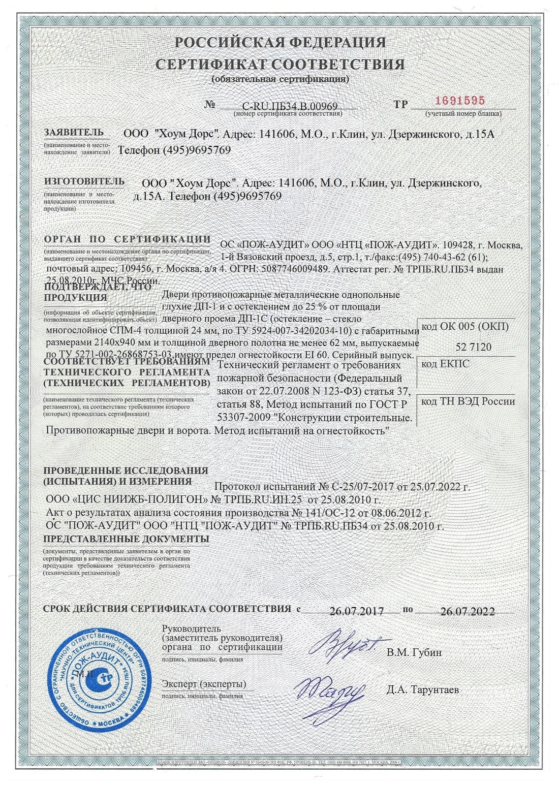 Добрый день. Благодарю сотрудников HomeDoors за установку новой двери. Пенсионерам трудно подобрать приемлемый по стоимости и качеству вариант. Но нам за 19 тысяч руб. предложили красивую и прочную металлическую дверь. После монтажа, ребята самостоятельно убрали и вывезли мусор. Советуем компанию. Делают на совесть.